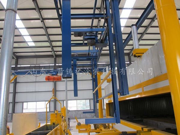 工藝前處理→上工件→預(yù)烘(預(yù)烘320℃-370℃ 15分鐘)→浸塑(振動,除余粉)→固化(180℃-200℃ 10分鐘) →下工件。浸塑是個加熱過程,金屬預(yù)熱、